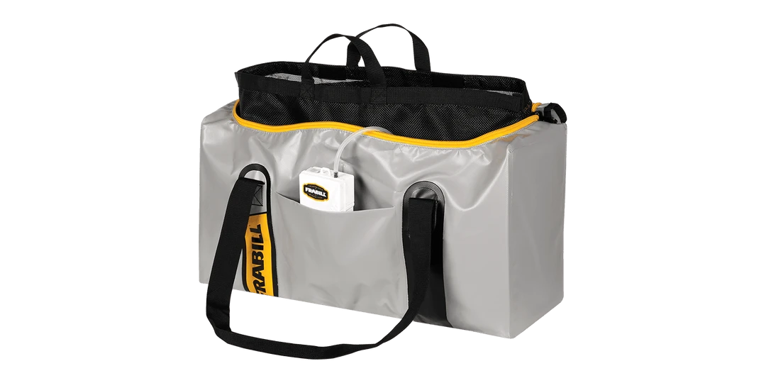 Frabill weighs in on fish care with a triple-threat tournament tote. This innovative weigh bag takes a soft-sided livewell duffel, inserts a durable mesh transfer bag and adds in a portable pocket-sized aerator to make sure your prize catch arrives at the staging tub alive and kick’n.
