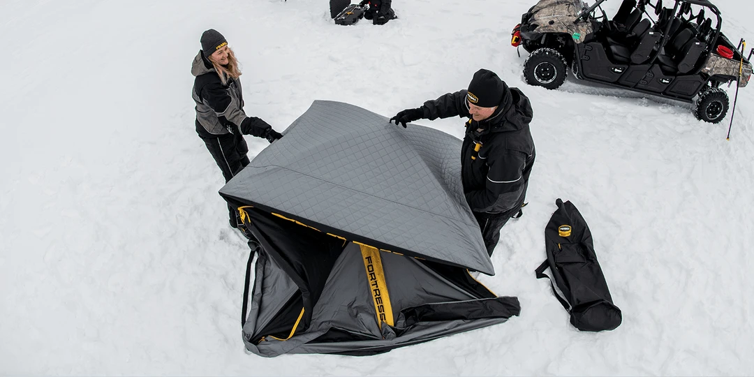 More room for you, gear and most importantly – fish. Revolutionary kick-out hubs in the fortress ice shelter create more fishable space inside an ultra-stable frame that locks in warmth. The lightweight design sets up easily to create an aerodynamic shape that fights back at rough winds. Inside, keep valuables and bulky gear secure yet close at hand so you’re ready to pull in your biggest haul yet.