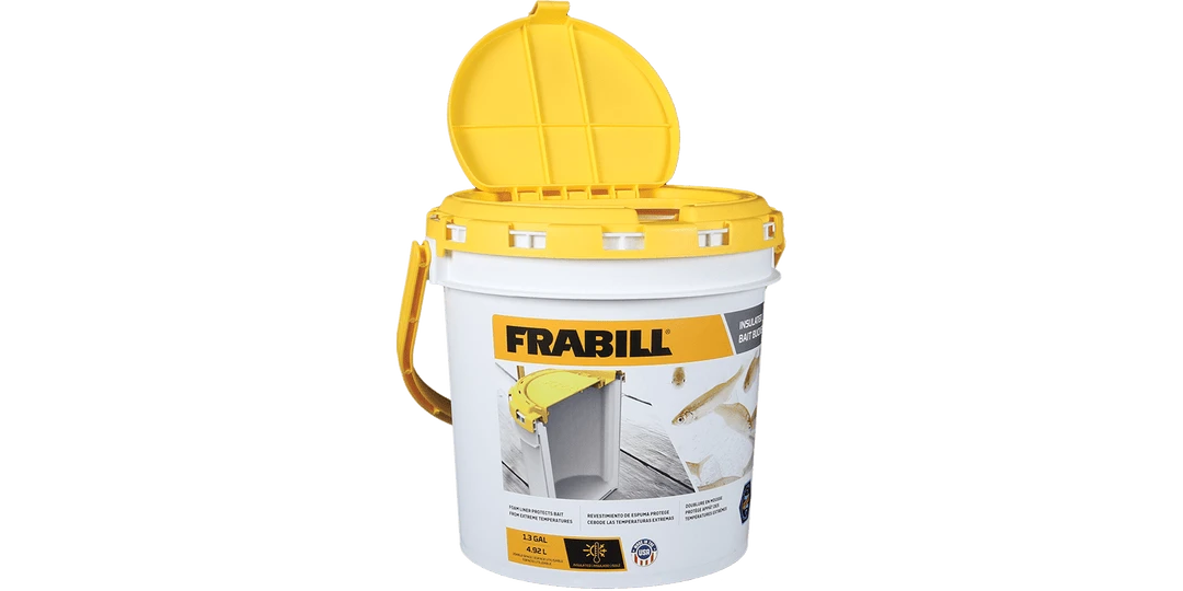 The familiar Frabill bait bucket is more functional than ever before. This bucket features the same classic, durable design with premium insulation and an upgraded lid to accommodate an aeration system.
