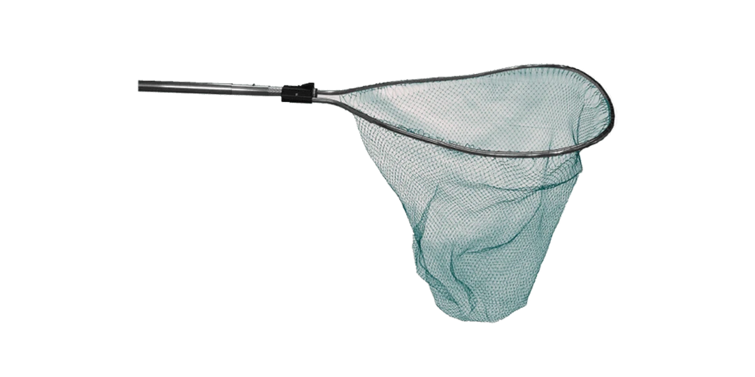Frabill shrimp net features a scooped hoop shape for maximum shrimp retrieval.